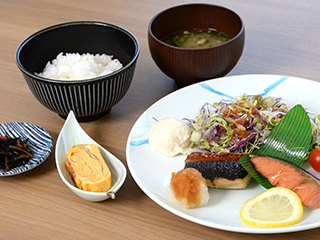 春日部市新庁舎に併設された「CAFE BLOOMY'S KASUKABE」では、春日部市と提携し、地元の魅力的な食材を使用したメニューをご用意しています。春日部産の米粉でつくるシフォンケーキや、エディブルフラワーをあしらった定食など、目でも楽しめる美味しいメニューが豊富。 季節毎に替わる、旬のフルーツを使用したデザートも大人気です。