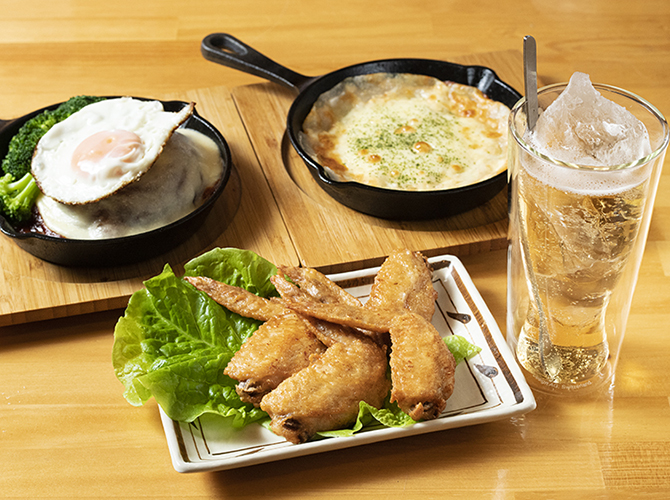 その日仕入れた食材を使って、和洋中の日替わりおつまみを提供します。ミスジカットステーキや、注文が入ってから 作る200グラムのハンバーグなど安くてボリューム満点なのも売りの一つ。甘くないさっぱりとしたレモンサワーも人気。