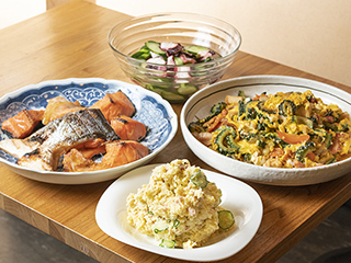 大根やたまご、手作りロールキャベツやがんもなど、だしがしっかり染みた関西風のおでんと、揚げたての串揚げをご提供。煮物や焼き魚など毎日5~6種のおばんざいもカウンターに並びます。