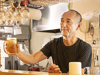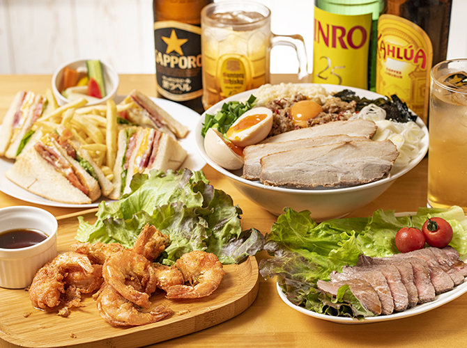 アヒージョや自家製ローストビーフをはじめとしたバルメニューが自慢の店。極太ちぢれ麺の台湾まぜそばも人気。お酒は、自家製のミントをすりつぶして作るモヒートやカシスオレンジなどのカクテルから、焼酎・ビール・ウイスキーなど種類豊富に取りそろえています。