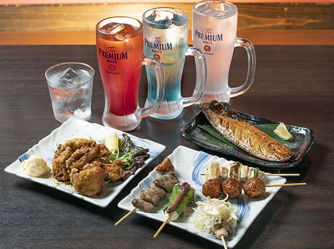 備長炭で焼く焼き鳥と鮮度抜群の魚介を提供。一品料理も充実しています。生ビールをはじめ、ハイボール、 ワイン、カクテル、焼酎、日本酒などの2時間飲み放題が人気。アットホームなお店です。