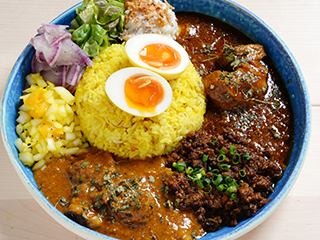 店名は変わりましたが、一番人気の3種の味が楽しめる「良ちゃんプレート」は健在です。スパイスの効いた辛めのチキンカレーをはじめにポークカレー、ビーフカレー、キーマカレーにくわえてカレーラーメンなど期間限定の特別メニューがお楽しみです。